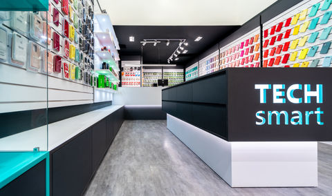 Uma sequência de 3 lojas feitas em 3 shoppings diferentes: duas em Blumenau e uma em Balneário Camboriú, na região de Santa Catarina. A Tech Smart é uma rede de lojas para Smartphones, possui também venda de outros eletrônicos e assistência técnica especializada.